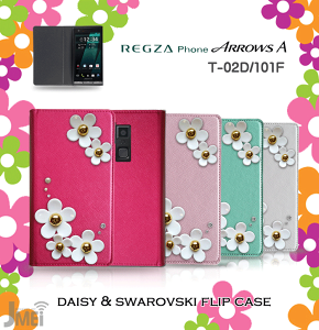 商品名 REGZA Phone(T-02D)/ ARROWS A(101F)専用JMEIデイジースワロフスキーフリップケース 商品説明 スリムで液晶面をしっかりガードできるフリップケース。